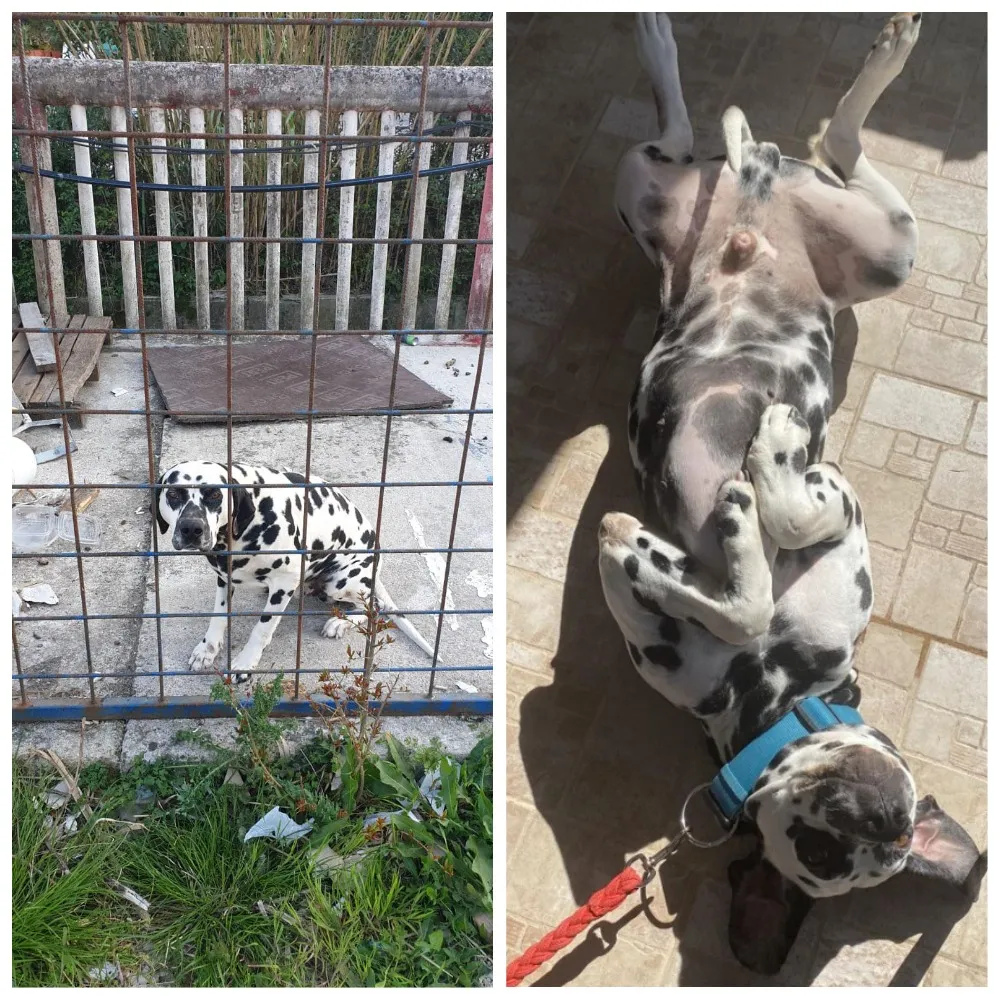 That's how all the grief in the world (when you are abandoned by the owner and brought to the shelter) and all the happiness in the world (when you found a loving home) look like. Marshal the Dalmatian in distress turned into Marshal the Sweet Love and Wonderful Friend. Adopt don't shop. That's all we gonna say here.