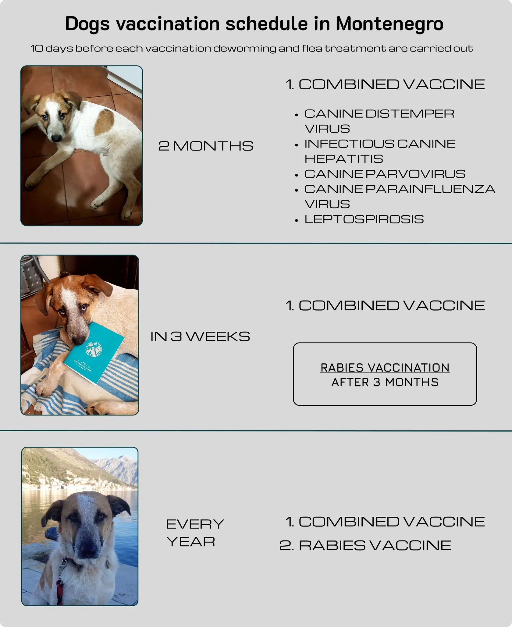 4. After a successfull quarantine period you can start looking for a new home for the animal. Or if you decided to adopt it by yourself, it’s time to deal with vaccinations (see the schedule below) and (pet documents).